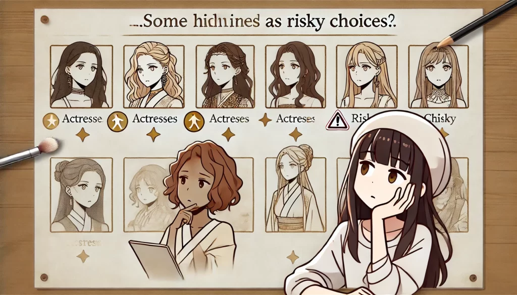 - グラビアアイドルや若すぎる女優は避けるべきNG例として挙げられる。